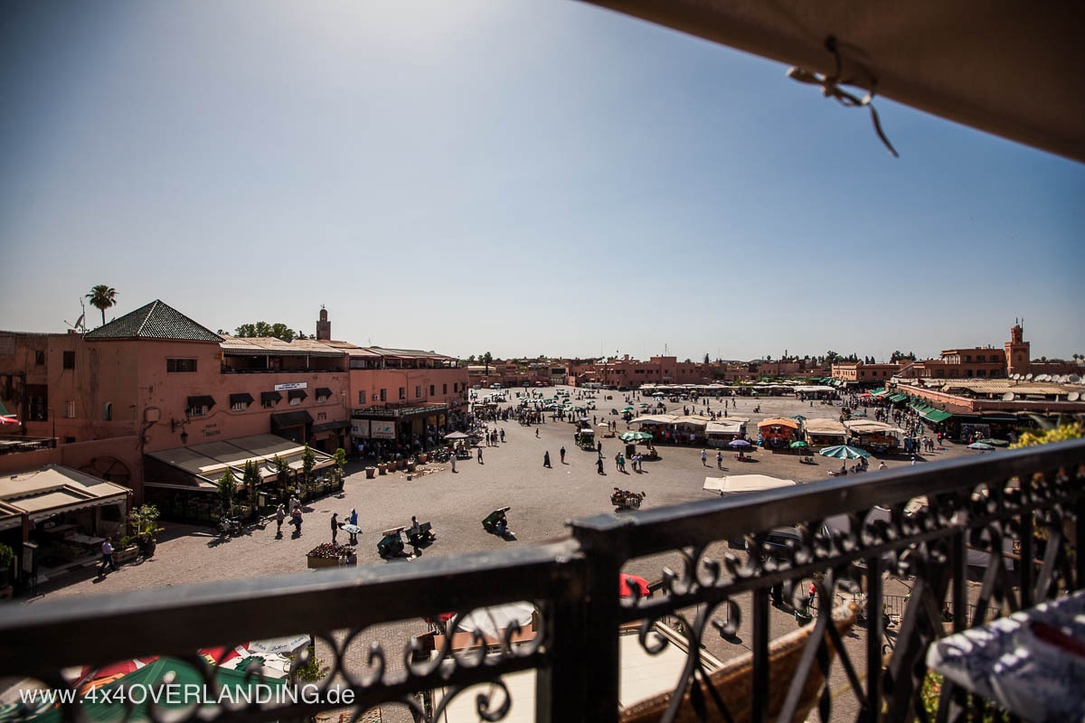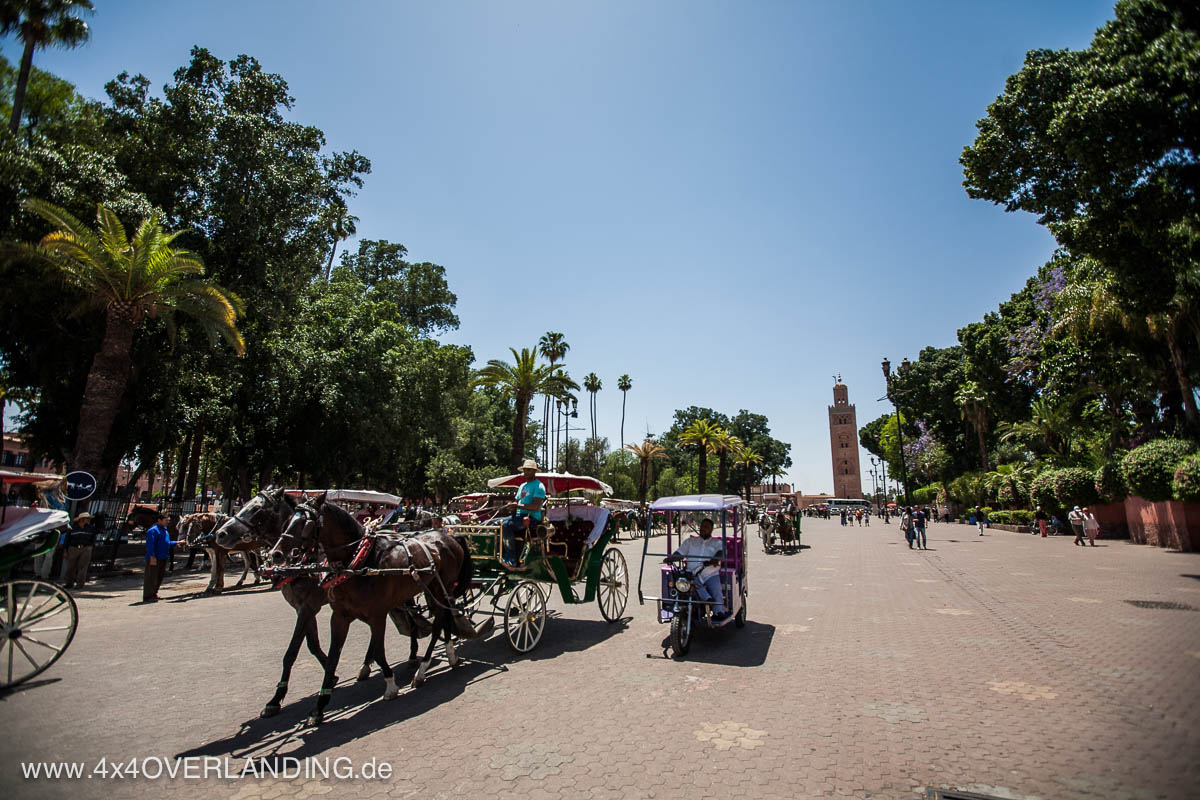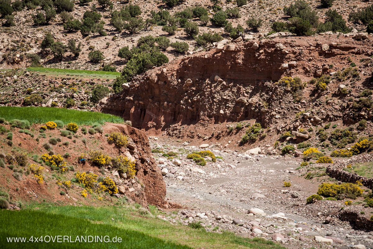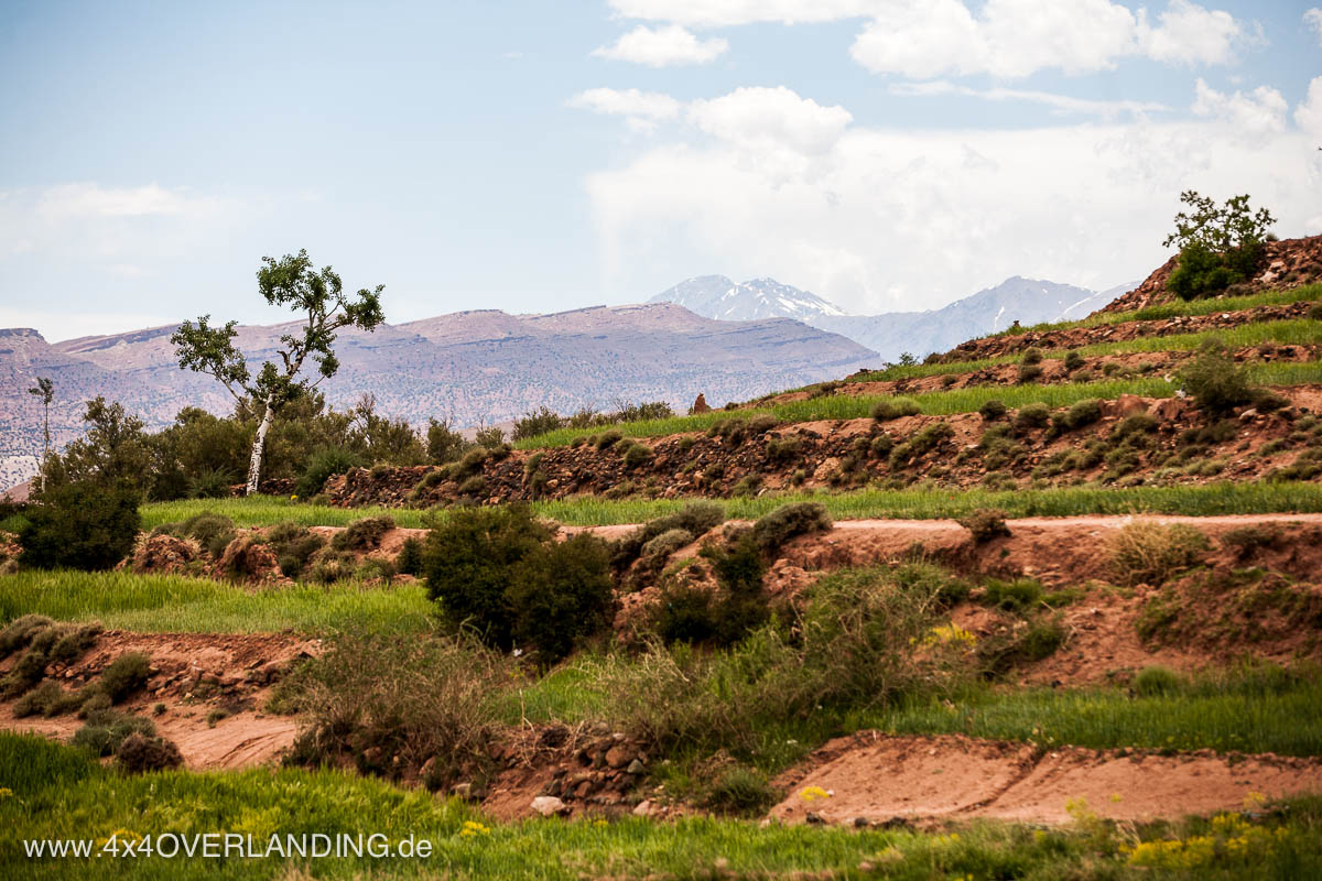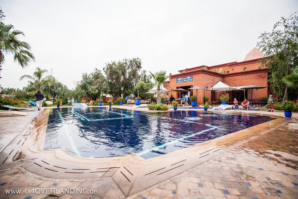 Die Fahrt nach Marrakresh zieht sich heute. Die ganzen Kurven und das langsame Tempo lassen die Zeit einfach dahin rinnen. Wir fahren von Ait Ben Haddou direkt weiter Richtung Norden um später auf die N9 zu stoßen. Die Landschaft ist überwältigend. Wir sehen das erste mal seit 4 Wochen Mehr als 3 Bäume auf einem Fleck. Unsere Mittagspause machen wir unter Nadelbäumen. Der Duft und die feuchtere Luft sind der Hammer. Und so viel grün für die Augen! Auf der N9 angekommen geht es stellenweise, wie vorher auch, nur im 2 Gang den Berg rauf. Beim Wechsel in den 3. kommen wir nicht weiter und müssen fast direkt wieder in den 2. schalten. Ich hoffe das ein Besuch bei Basti da etwas Abhilfe schaffen wird…. Wir sehen jetzt auch wieder seit Ewigkeiten Laubbäume, das sowas banales so schön sein kann – dafür muss man wohl erstmal eine Zeit in die Wüste. Die Fahrt über den Tizi-n-Tichka war echt sehr schön. Dafür war die Restliche Strecke nach Marrekesh eher langweilig. Timo haate und das Camping Ourika empfohlen und so peilen wir das auch direkt an. Direkt bedeutet weil wir nur nach Satelietenbild und Wegpunkte fahren mehr oder weniger Luftlinie. Das führte uns auch direkt über irgendwelche Felder durch irgendein Vorort oder Dorf zum Camping. Zwischenzeitlich hatte ich das Gefühl das wir hier gleich rückwärts wieder raus müssen, es wurd immer enger und enger. Aber el Toyo ist ja nicht so breit ;-) Der Campingplatz ist sehr modern, alles schön sauber, großzügig und ein großer Pool. Nachteil ist, er liegt direkt an der Straße.